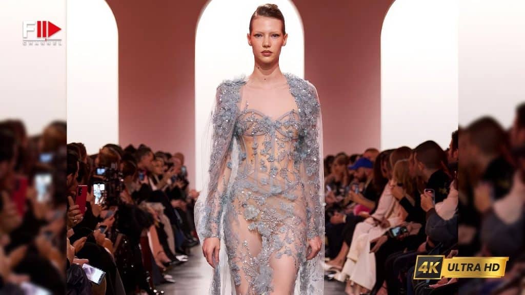 Alla corte di Elie Saab, un omaggio a Versailles e alla sua regina, tra volumi scultorei, sete evanescenti, elementi sottratti alla natura e un’audace sensualità che emerge con vigore nei salotti parigini.
