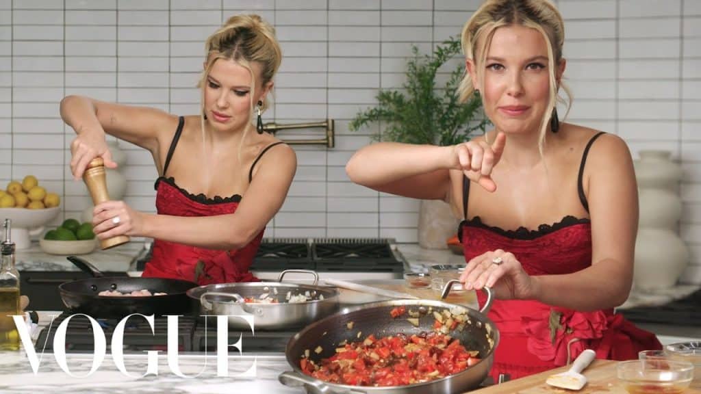 Watch as “The Electric State” star Millie Bobby Brown takes Vogue into the kitchen to serve both a “lewk” and a meal. The main course for this evening? A paella stuffed with bell peppers, onion, garlic, chorizo, and chicken, along with a Shirley Temple to wash it all down. “I can’t be a Bongiovi without good Italian food!” says Millie Bobby Brown, referencing the delectable dishes served at her wedding to husband Jake Bongiovi. Following in the footsteps of fellow chef and actor Stanley Tucci, Millie dices and fries over medium heat while offering scorching-hot commentary. She talks about baking during COVID, being a guest on Gordon Ramsay’s “Hell’s Kitchen,” and why, even at 21 years old, she still prefers to drink Shirley Temples. Finishing up with a cascading shower of parsley—a tasteful ode to Salt Bae—Millie plates her paella and tastes her finished masterpiece.